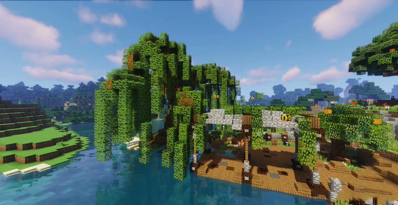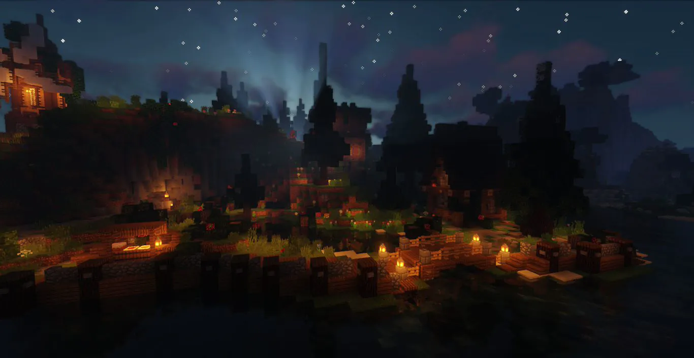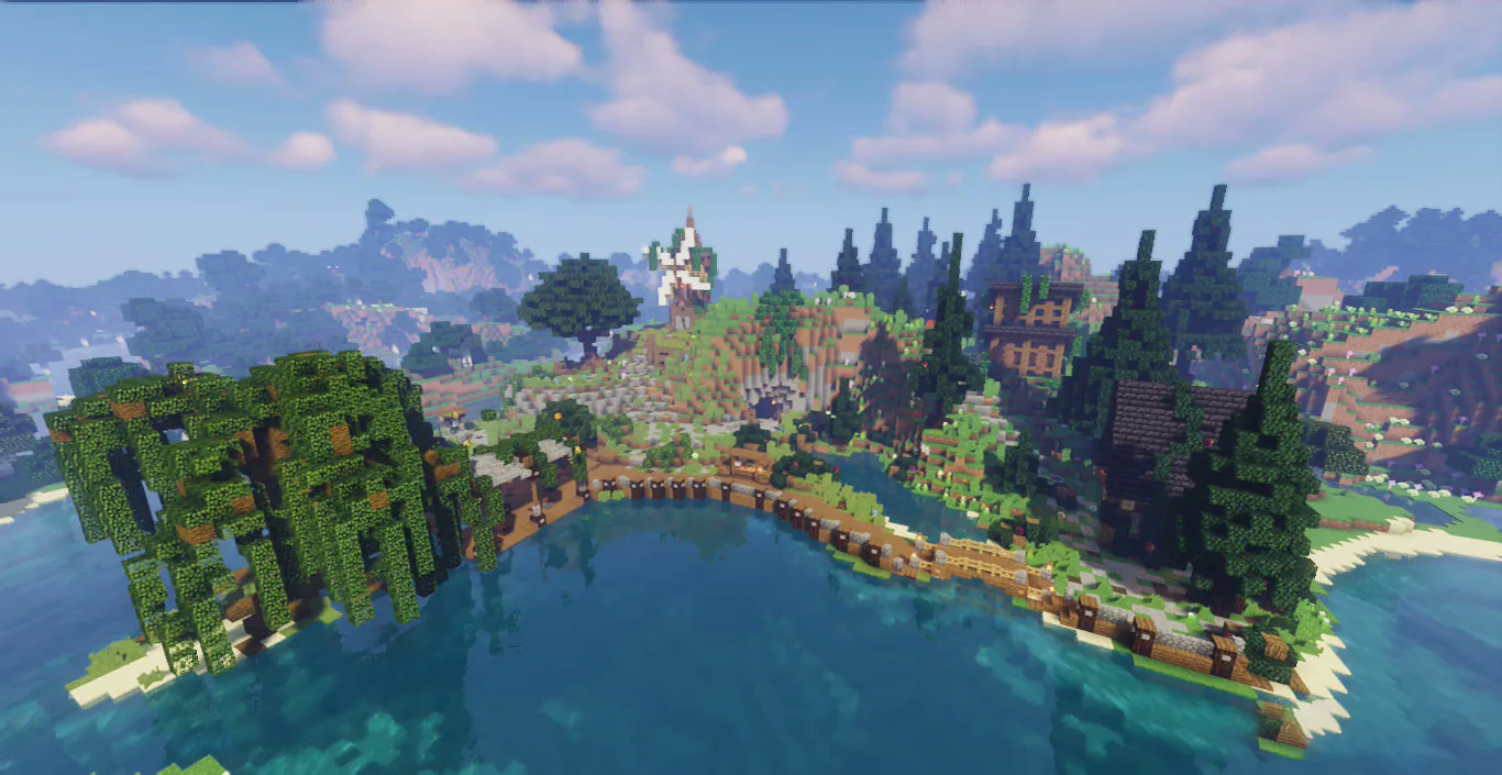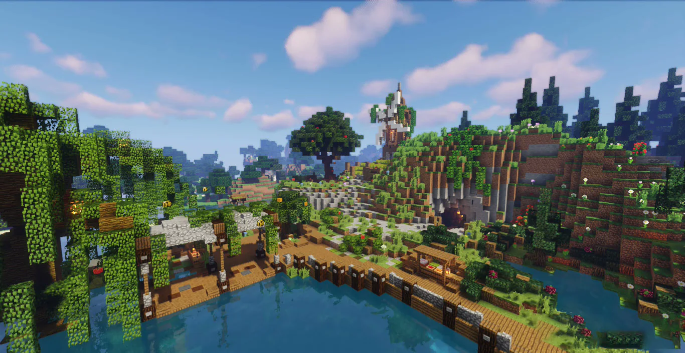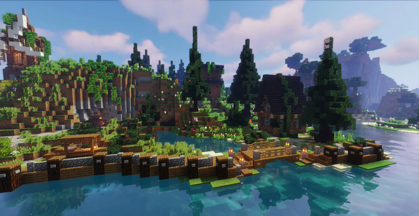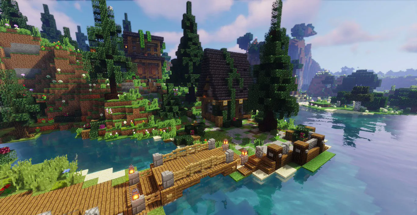 Населённый пункт расположен на берегу реки у подножия холмов. Архитектура домов – традиционный стиль Minecraft с элементами рустикального и национального стилей.